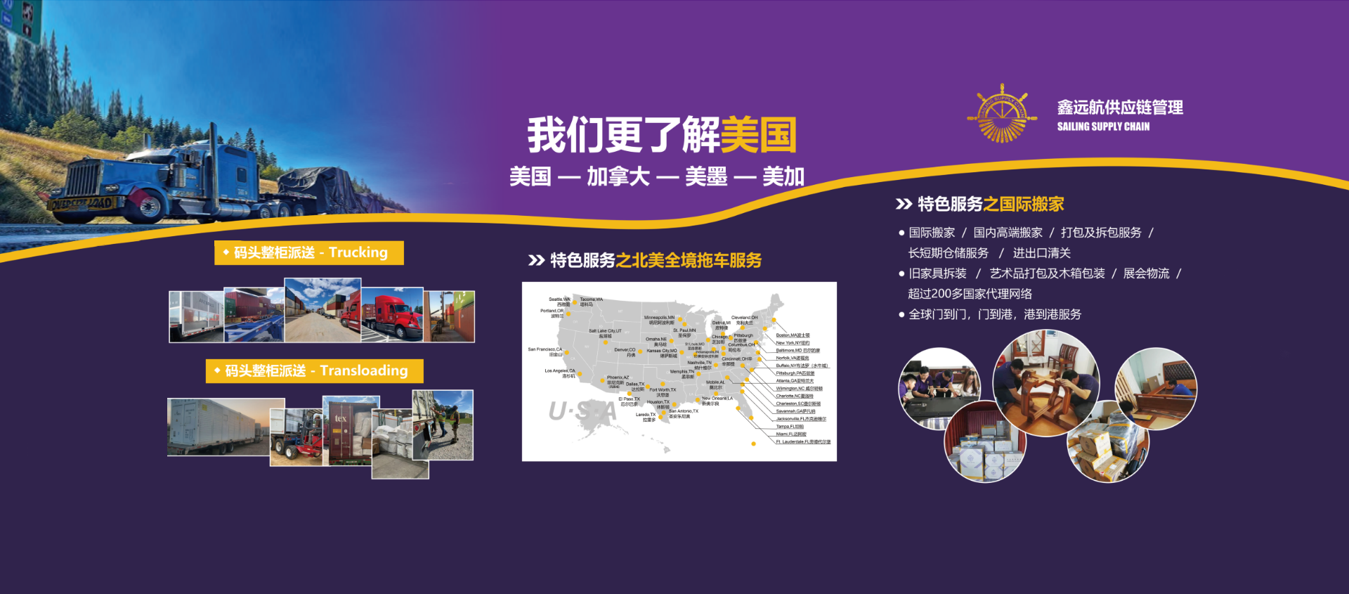 我們的服務涵蓋所有貿易條款CIF,DDP,DAP,DDU,FOB,EXW.與各大船東COSCO,HMM,YML . ZIM,MSC等建立共贏的長期合作關系,在海運、空運、跨境電商物流,國外清關拖車、 海外倉庫及各類特種項目柜有多年操作經驗,同時在全球200多個國家擁有 10000多名代理網絡,為企業提供全方位的物流解決方案。近年來,我們更是致力于開拓電商,重點推出美國,加拿大全區域拖車及美墨邊境拖車,國際私人物品搬家及展會物流等特色服務.......